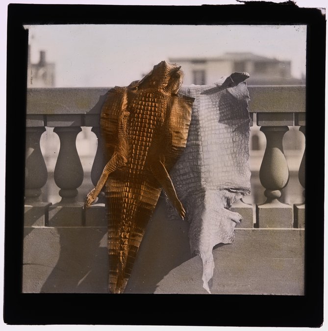 Our photographic image vocabulary of the early 1900s was (for the most part) monochromatic, black and white, yet our scientific image vocabulary meant there was a strong desire to illustrate these lectures with colour. To address this need some lantern slides were hand coloured. It was a fiddly and painstaking process so hand colouring was reserved for only a selection of the lantern slide collection. Of the 10,000 recently digitised Australian Museum lantern slides, 527 of them are hand coloured. Ethel King must have been busy during her time at the Museum because according to the lantern slide register 120 of these coloured slides were done by her.
